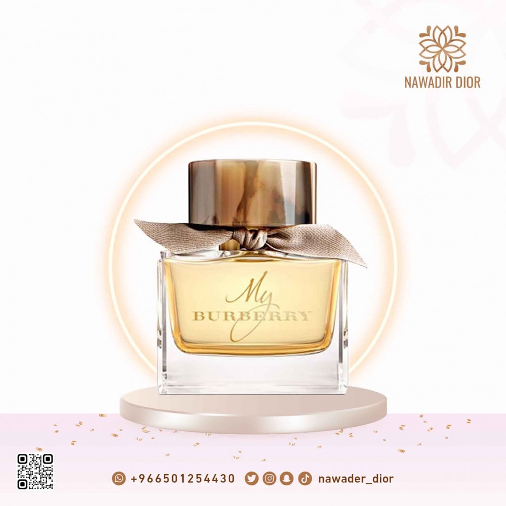- يصوّر عطر ماي بربري أو دو برفان مشهد حديقة لندن بعد المطر برائحته المميزة، بينما تنقشع السحب عن الشمس لتجفف الحصى الرطبة. هنا تتداخل مقدمة العطر للجلبان والبرغموت مع قلب من الجيرانيوم، والسفرجل الذهبي، والفريزيا، لتكمّلها قاعدة تزاوج بين روائح الوردة الجورية المغلّفة بقطرات المطر وورود السنتيفوليا والبتشول.